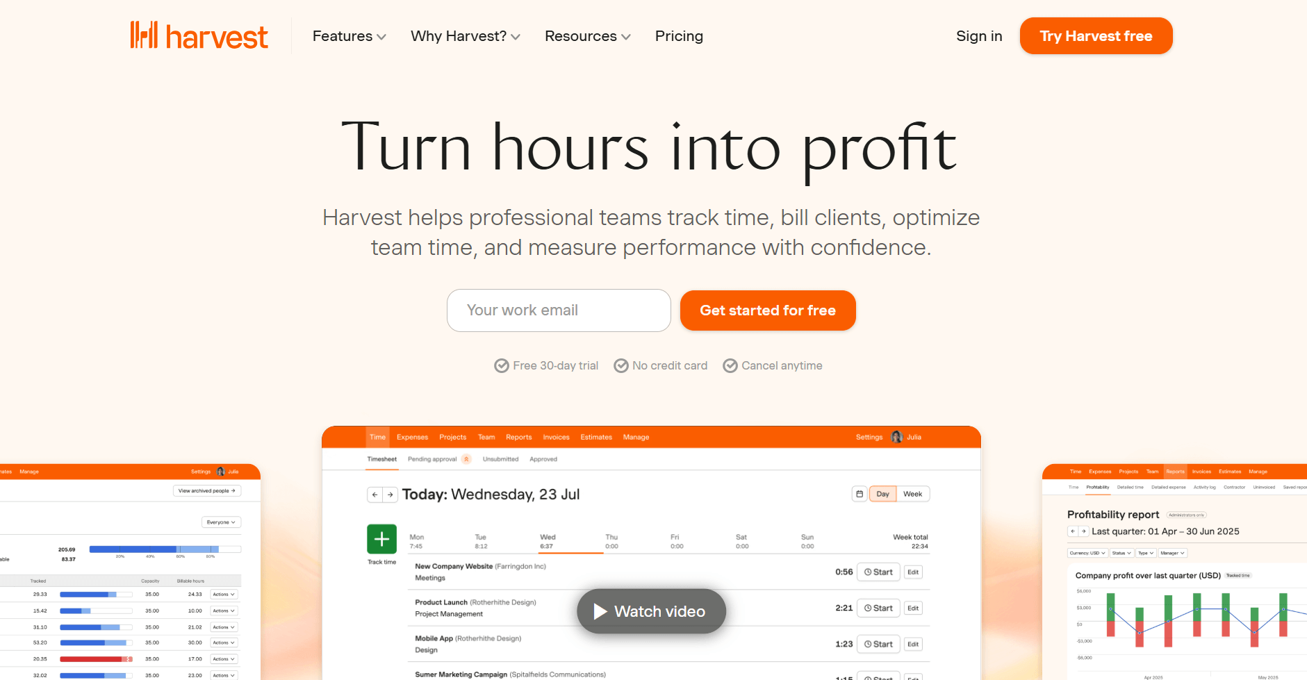 - Harvest if time-based billing drives your revenue and you want straightforward workflows from tracked hours to invoices.