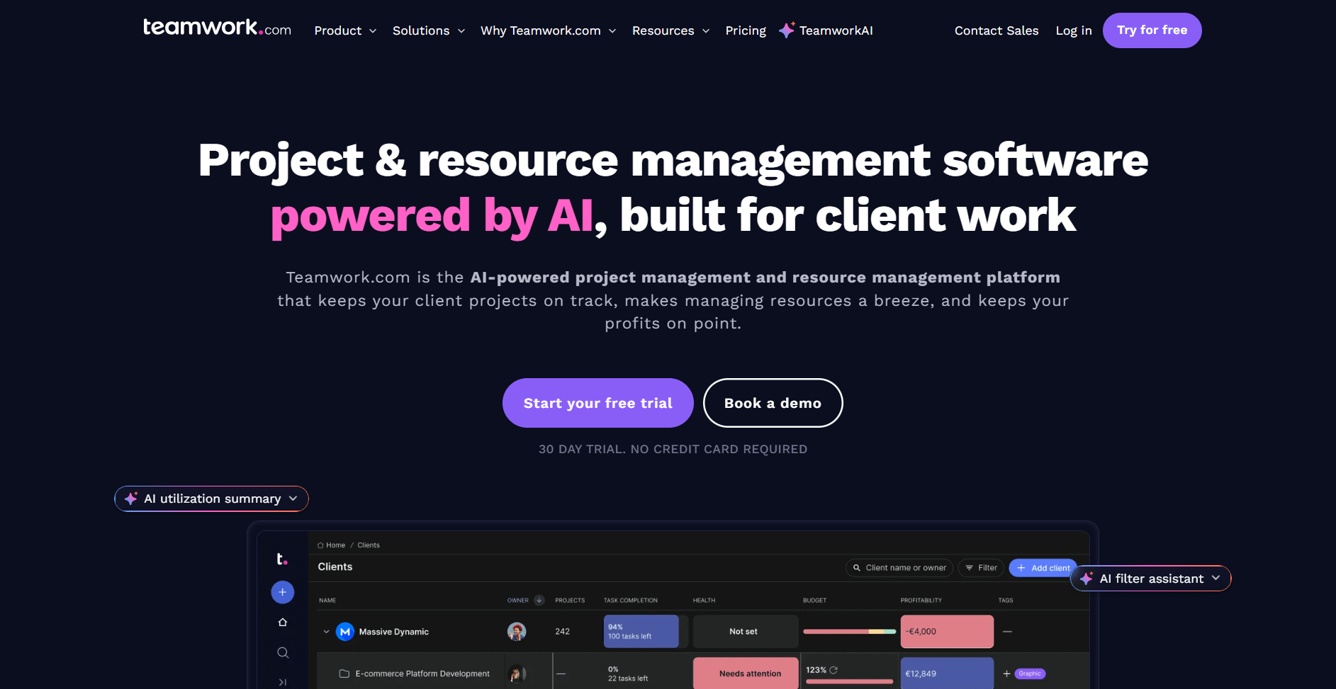 - Teamwork.com if you manage multiple active client projects and need separate workspaces for each client relationship.