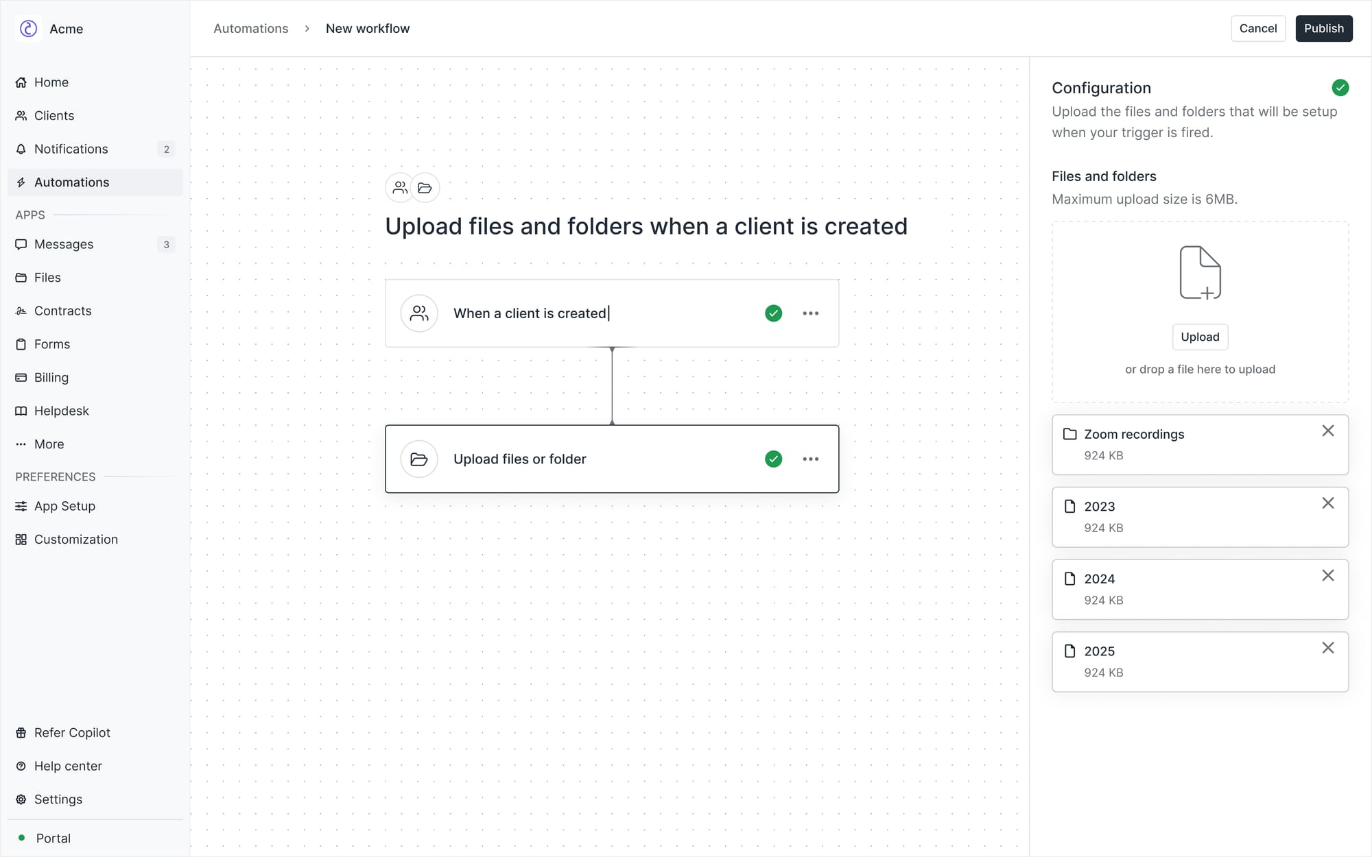 - Upload files and folders when a client/company is created