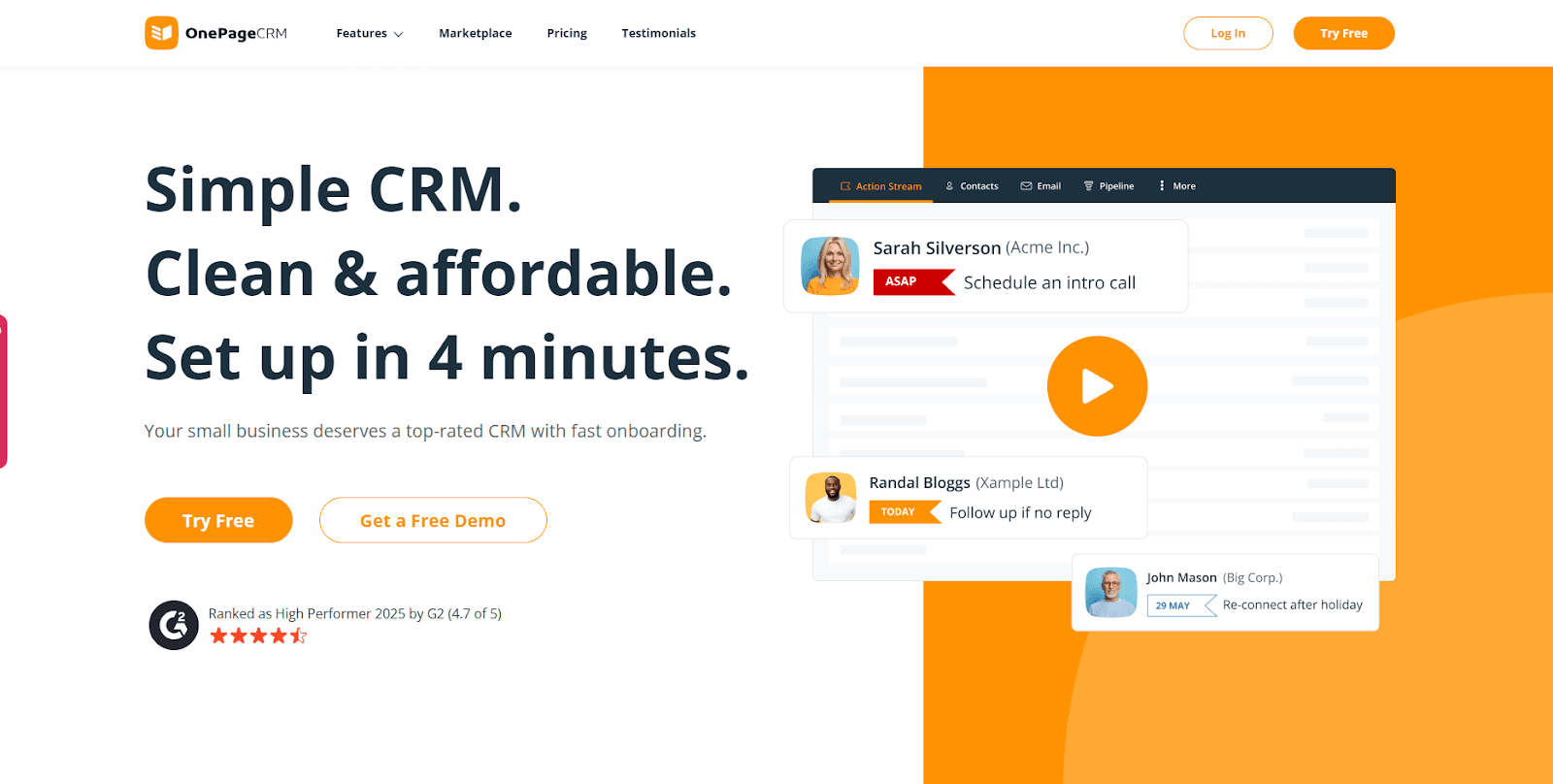 10. OnePageCRM: Best for solo consultants