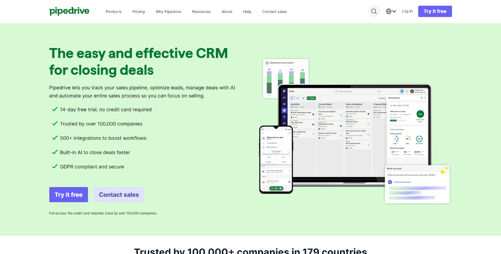 Pipedrive starts at $14 per user per month.