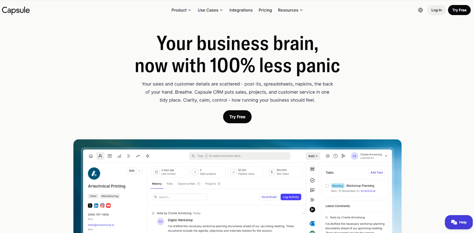 Capsule is a lightweight CRM that gives small teams a simple way to track contacts and the deals they’re working on. In testing, it handled straightforward tracking without much setup, which made it easy to get started right away. The main views stay clear as you add notes or update deal progress, and I liked how quickly I could see where a client stood with only a few clicks.