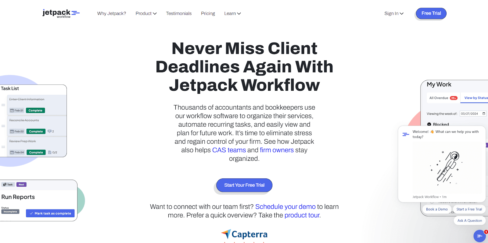| Jetpack Workflow | Firms that need task and job tracking | $40/user/month | Helps teams track recurring tasks with clear job dashboards |
