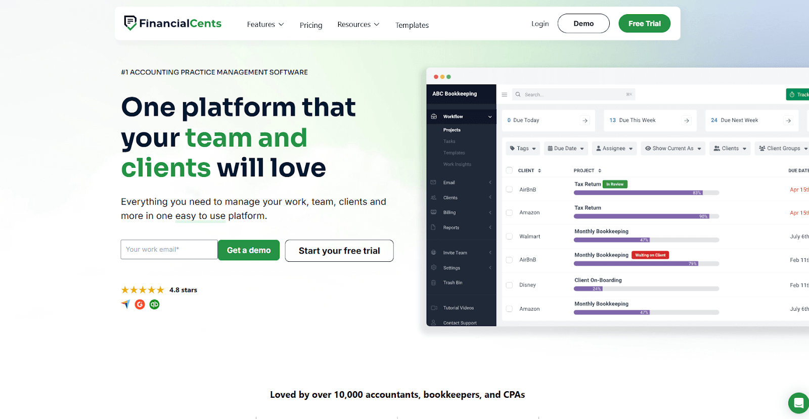 Financial Cents is a good match for firms that find traditional project management tools too busy and want a cleaner way to handle recurring work. If you need more depth as your team grows, Karbon offers stronger tools for busy workflows.