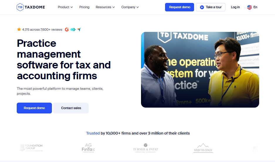 TaxDome starts at $800 per year on a 1-year commitment and targets accounting and bookkeeping firms that want a single platform for document management, client portals, and automation. It includes unlimited clients, eSignatures, and storage at no extra cost.