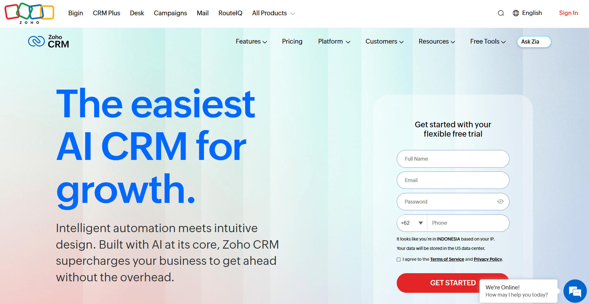- AI assistant (Zia): Provides sales predictions and lead scoring.
