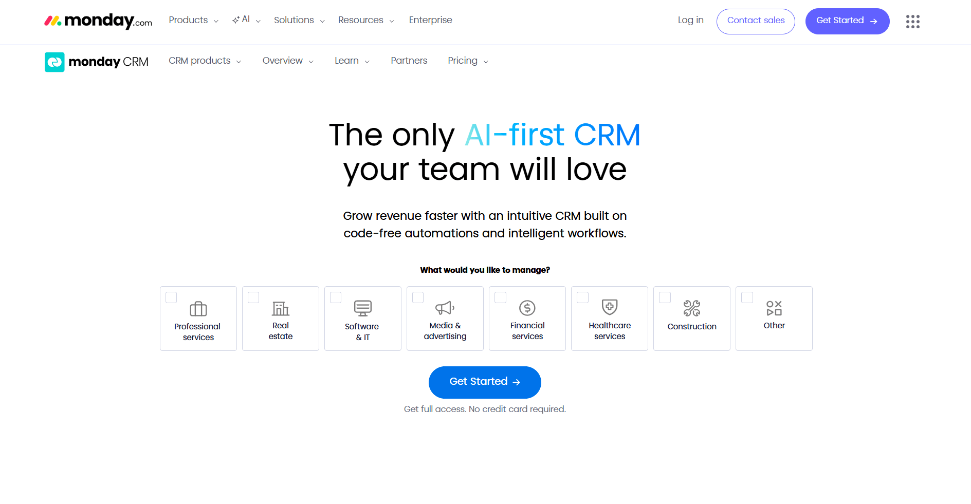 - monday CRM if you want visual project tracking alongside deal pipelines in customizable boards.