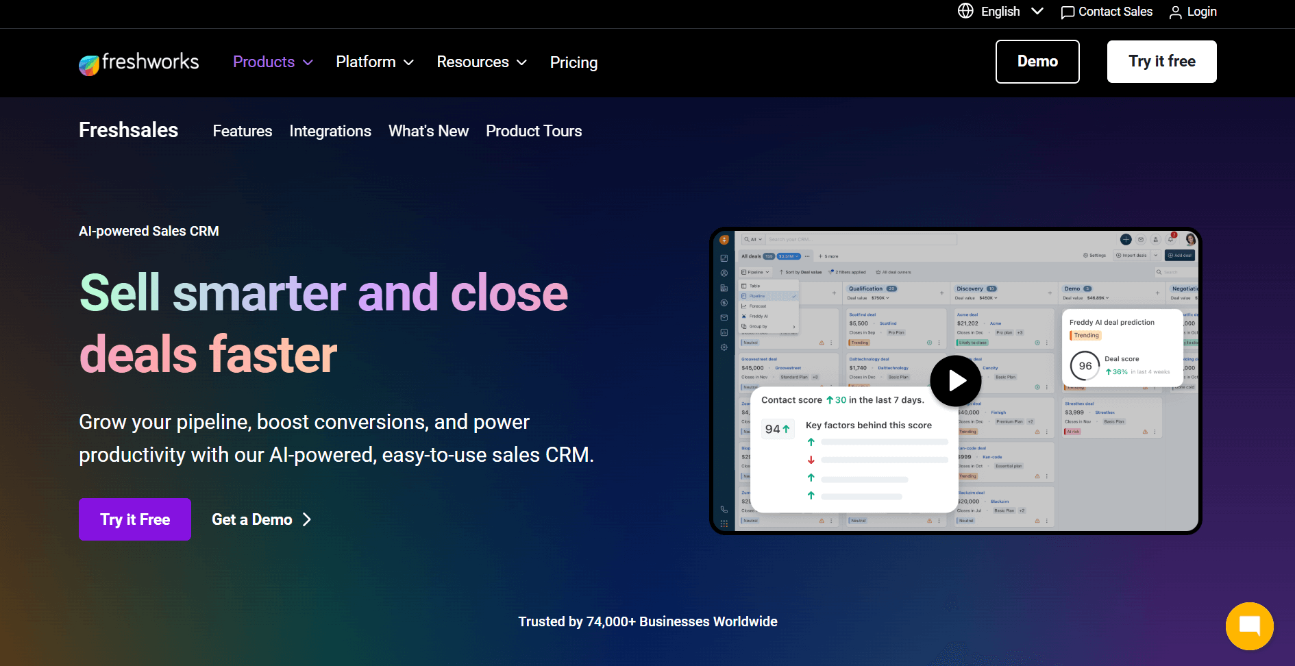 | Freshsales | Sales-driven businesses | $11/user/month | AI-driven lead scoring and pipeline tracking |