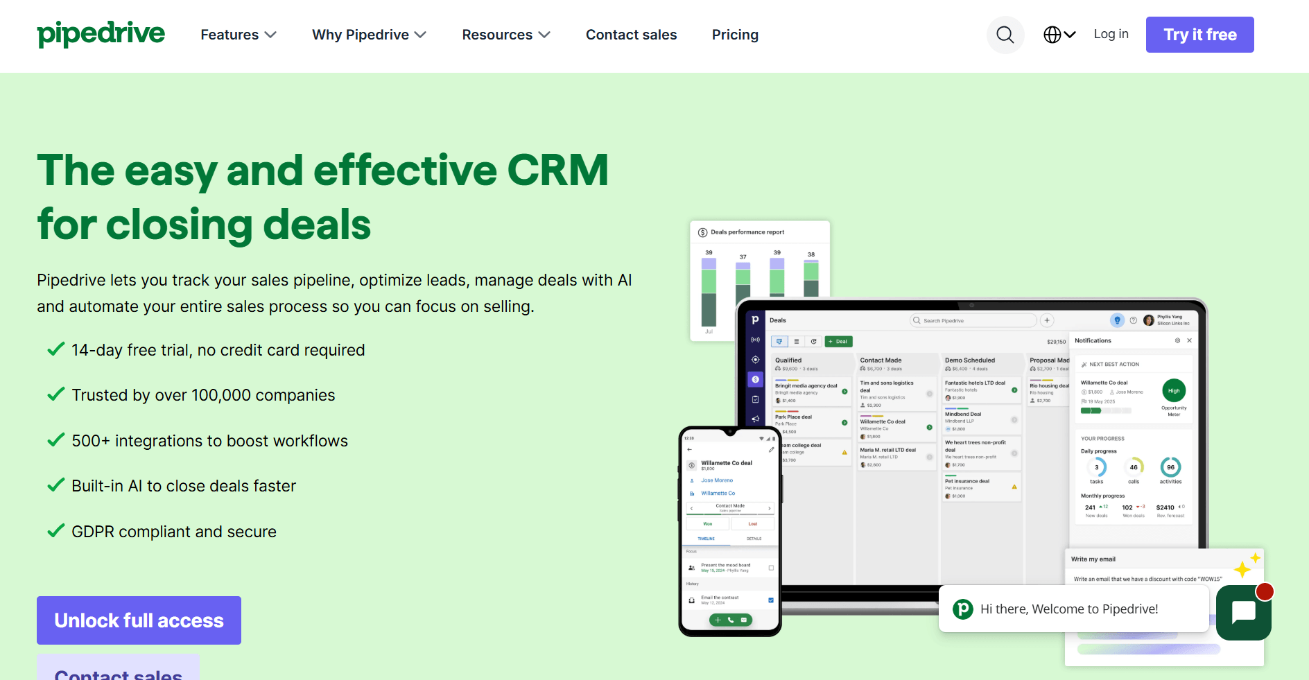4. Pipedrive: Best for sales-led teams tracking deals visually