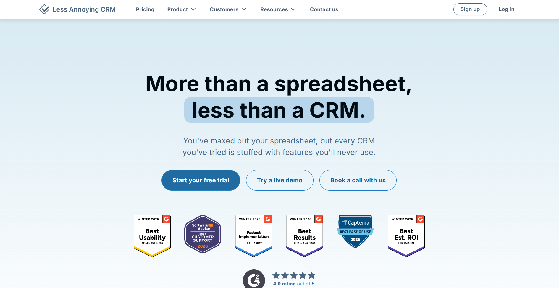 - Less Annoying CRM if you're a solo operator or very small team and want something straightforward with flat-rate pricing.
