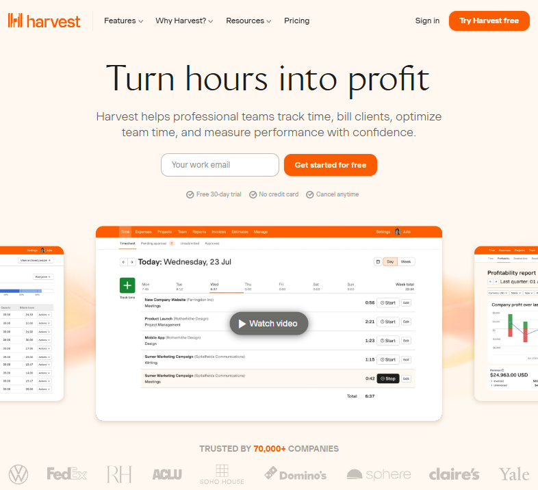 - Harvest if time tracking and billing accuracy are your top priorities.