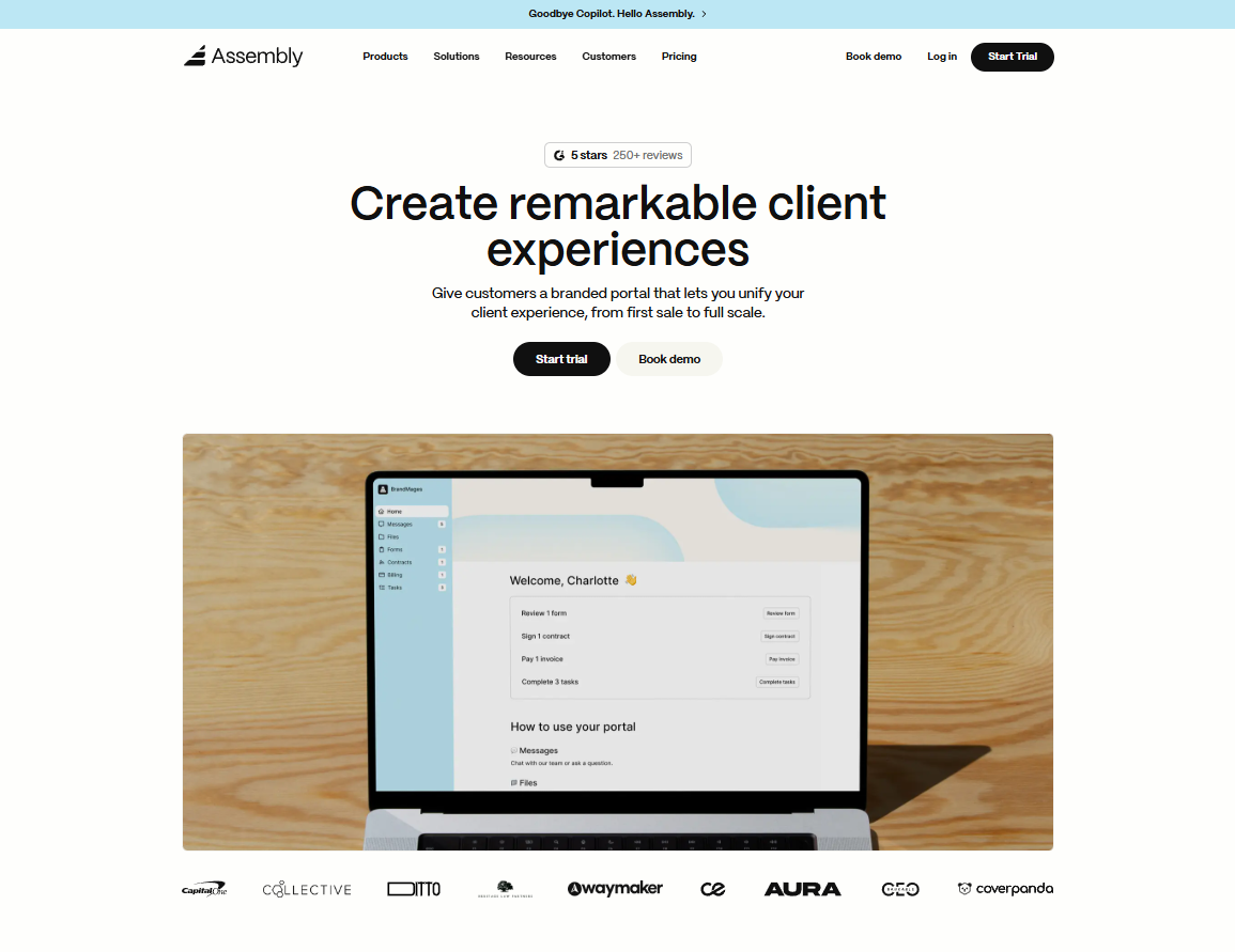 We built Assembly to solve many of the same problems. It brings contracts, billing, messaging, and onboarding into one branded client portal so teams can work together smoothly after the sale. That focus on visibility and organization makes it a dependable upgrade for service businesses that want clients to stay informed without extra tools.