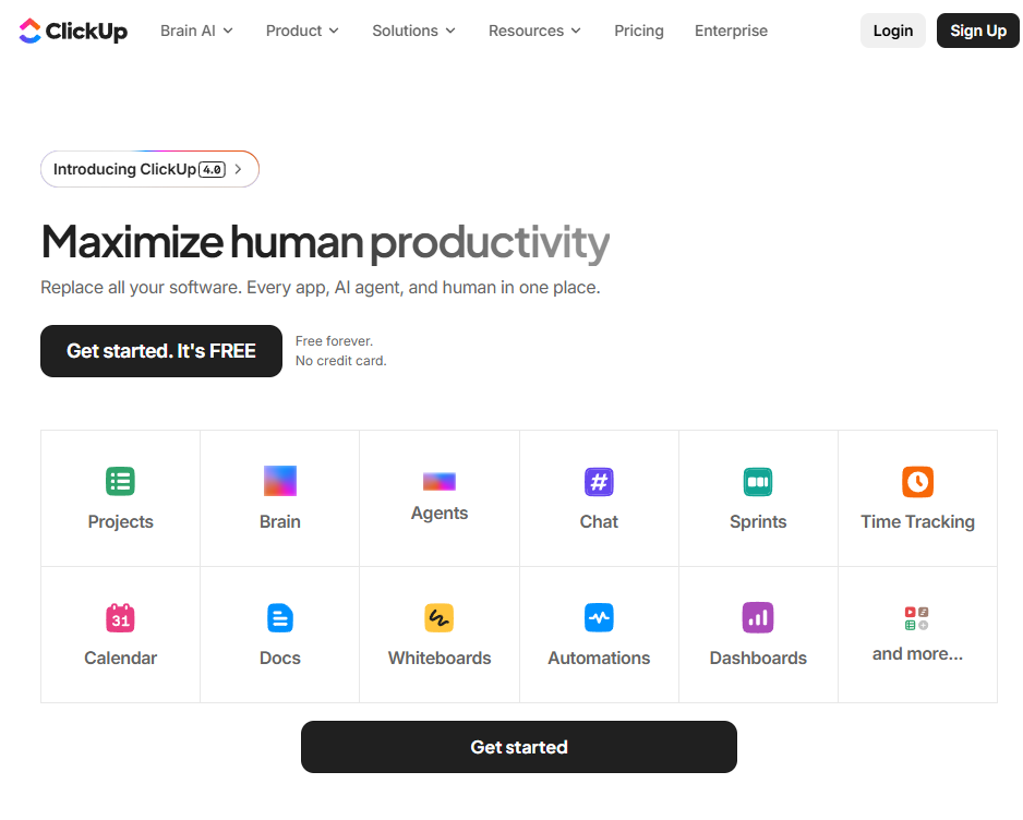 ClickUp gives teams a structured way to manage client projects and internal work together. While testing, I built an onboarding workflow that tracked each client through delivery stages, using dashboards to view workloads and priorities. The real-time boards made it easy to see who owned each task and where jobs stalled.