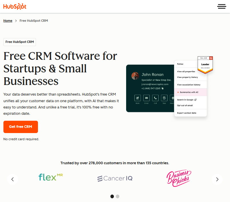 HubSpot CRM helps small teams manage outreach and sales pipelines efficiently. Its features keep leads, tasks, and communication in one structured view. If you’re ready to move beyond sales tracking into post-sales management, Assembly or ManyRequests can cover that next stage.