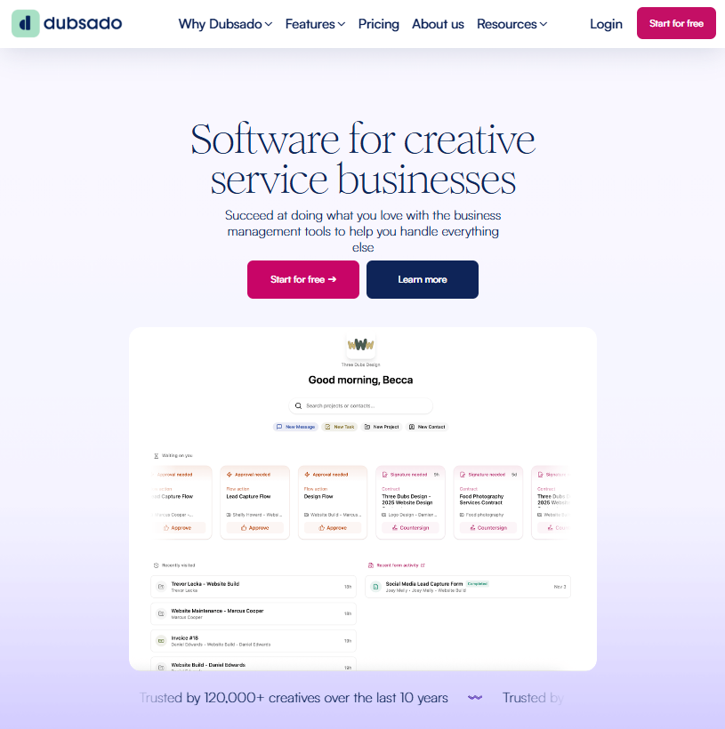 | Dubsado | Freelancers building workflow automation | $200/year | Automates onboarding, contracts, and recurring invoices |