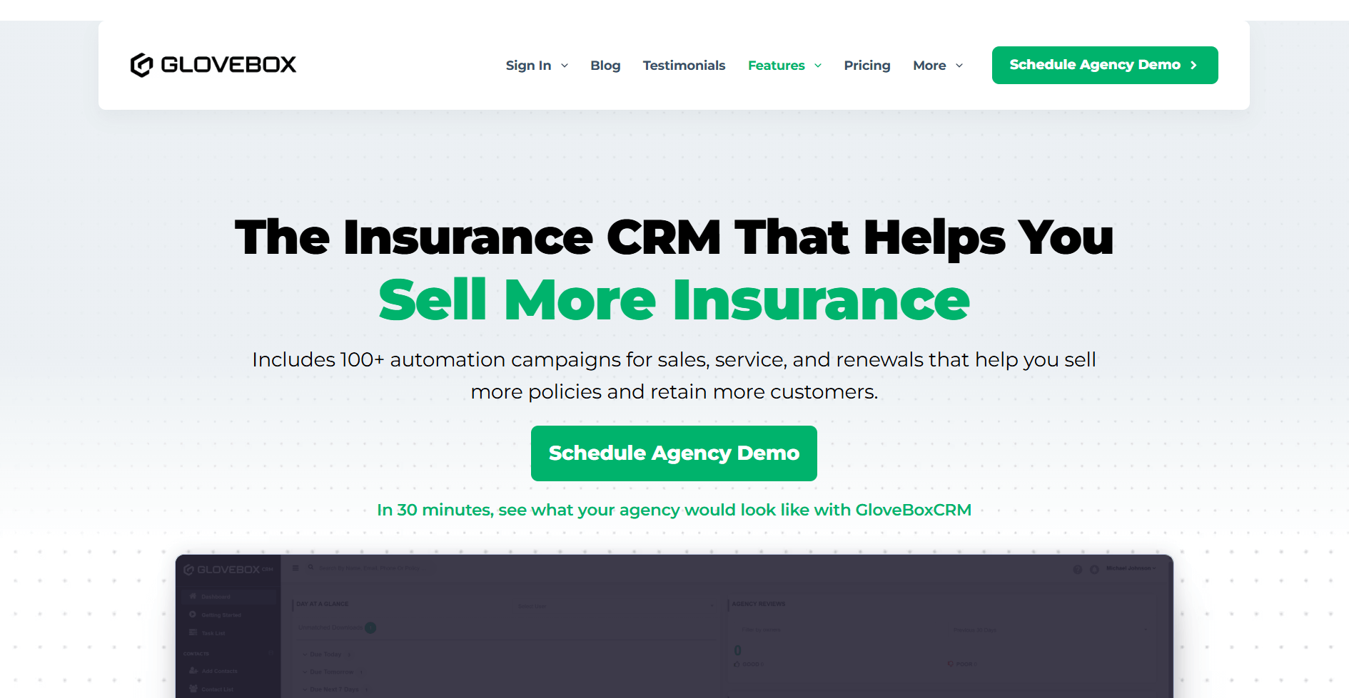 8. GloveBoxCRM: Best for insurance CRM and client follow-up