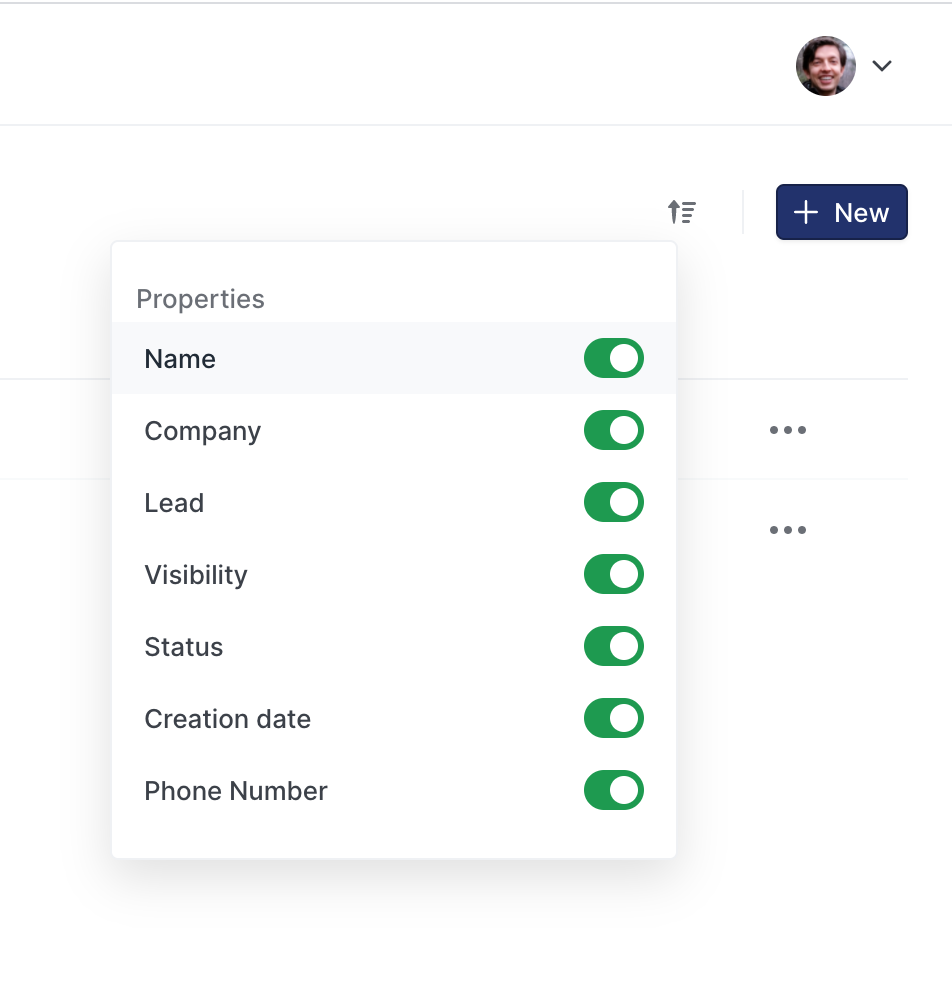 You can now click on a filter button on the CRM table to indicate which columns you would like to show. Filters are user-specific so your teammates can setup different filters and those preferences are saved.