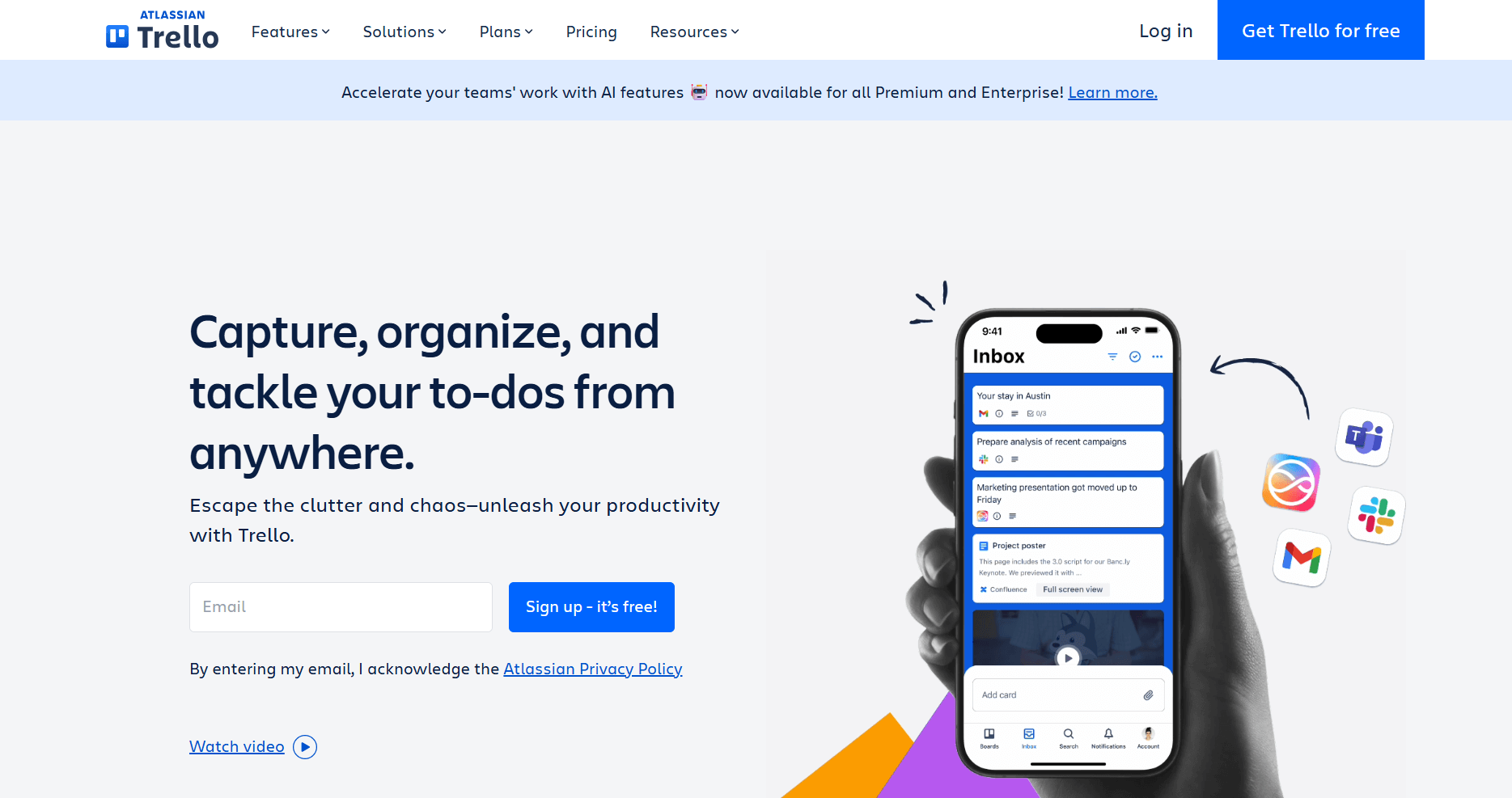 - Multiple views: Manage work in list, board, or timeline layouts.
