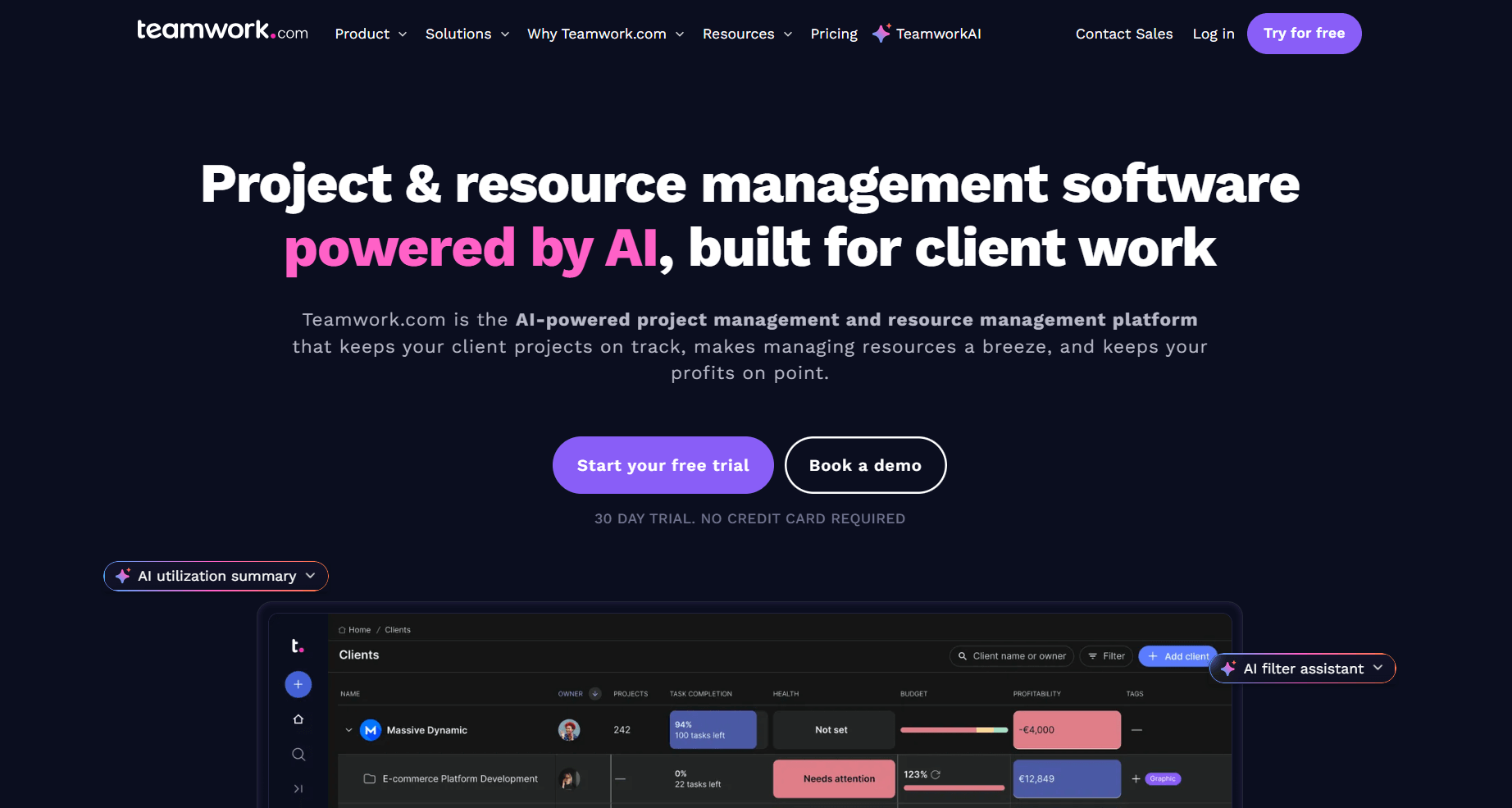 - What it does: Teamwork.com gives you projects, task lists, time tracking, and client permissions for managing delivery. You can organize campaigns into separate projects, assign work, and track hours against budgets. The platform supports file sharing and client access.