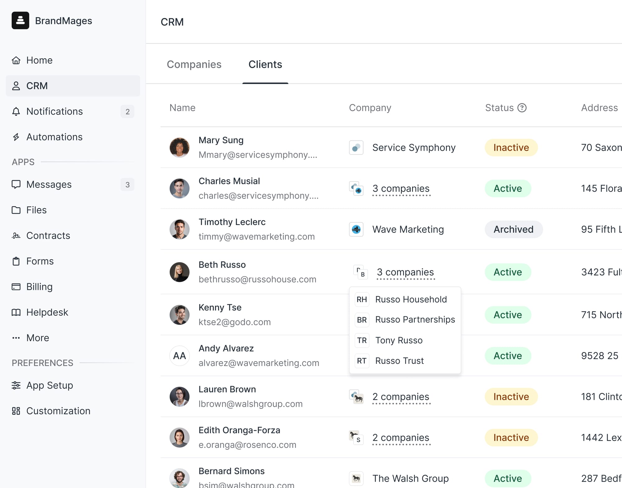 In your Dashboard’s CRM, you and other internal users can now assign up to 30 companies to a single client. You can see you clients’ companies on the Clients tab and update their company assignments in their Client Details sidebar.