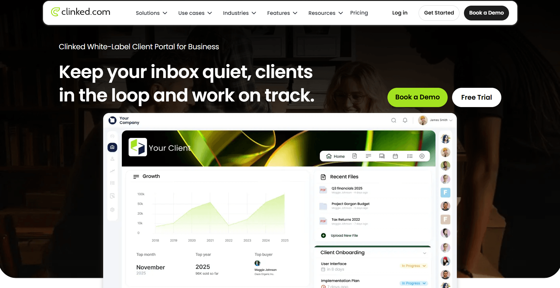 Clinked is a Plutio alternative tailored for service-oriented, data-centric businesses. It labels itself as a "Custom-branded Business Client Portal." Clients receive a uniquely branded gateway, making essential features readily accessible.