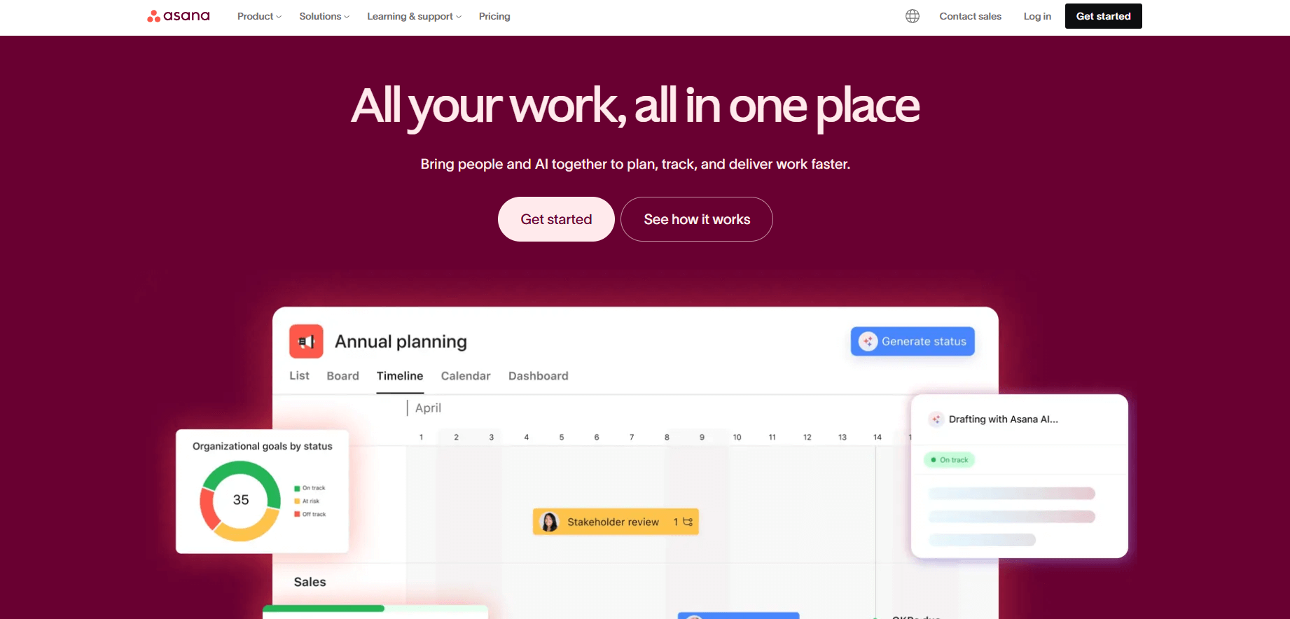 | Asana | Structured workflows with templates | $10.99/user/month | Timeline views that map task relationships and repeatable project flows |