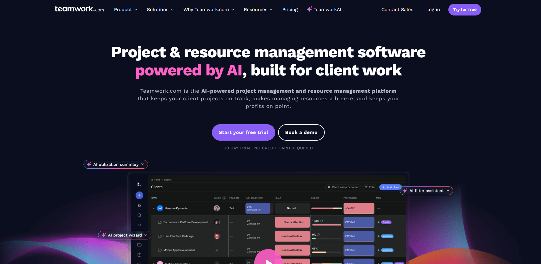- Teamwork.com if you manage multiple client projects simultaneously and need clear separation with time tracking for each engagement.