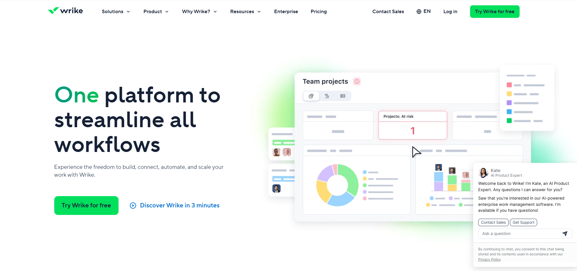 | Wrike | Structured intake and approvals | $10/user/month | Request forms that route work and markup tools for reviews |