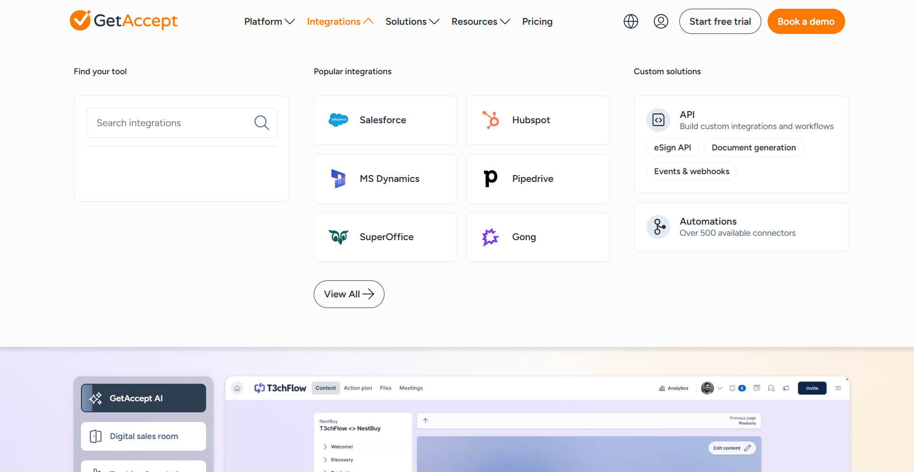 Similar to Assembly, GetAccept combines your tools in one place so you don’t have disjointed processes. E-signatures and real-time tracking speeds up deal closures and reduces delays. Overall, this platform is great for modern sales teams looking to organize their processes and have all the tools they need in one place.