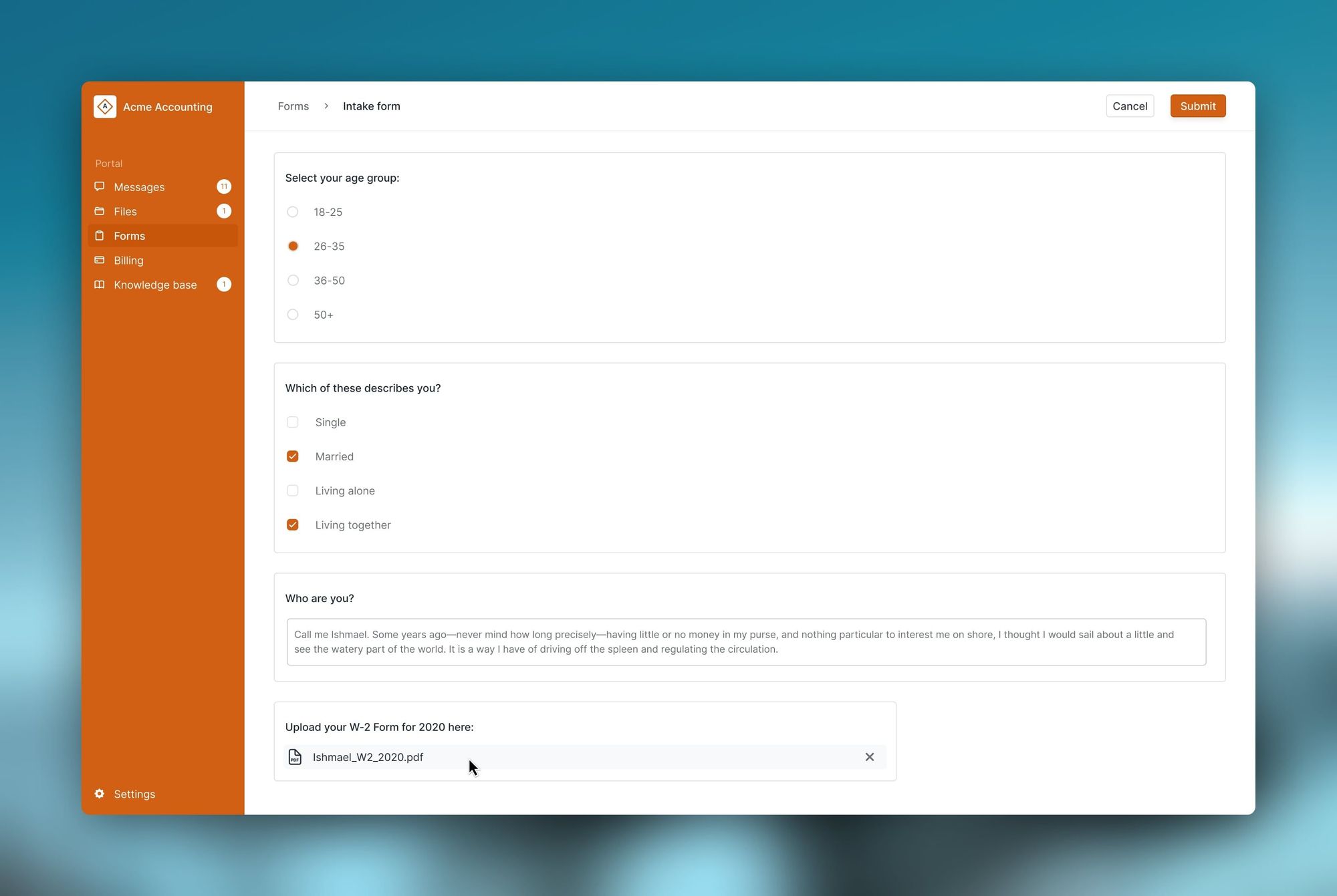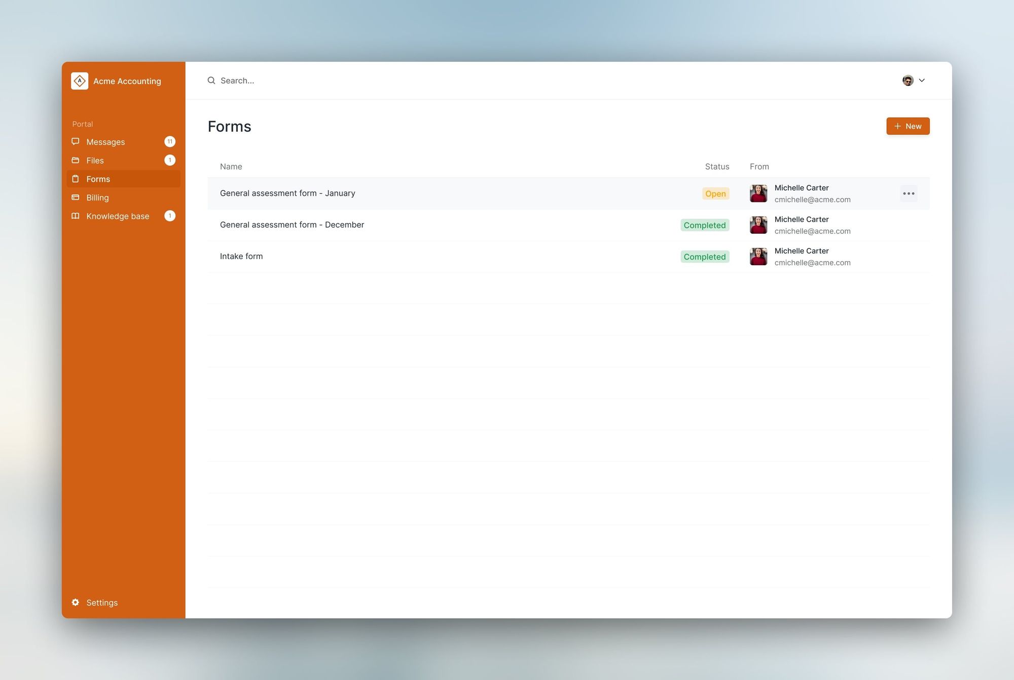 Just like our other modules (file-sharing, messaging, billing, and knowledge base), intake forms is also modular. That means you can use Portal just for intake forms, or you can use it in combination with any of the other modules.