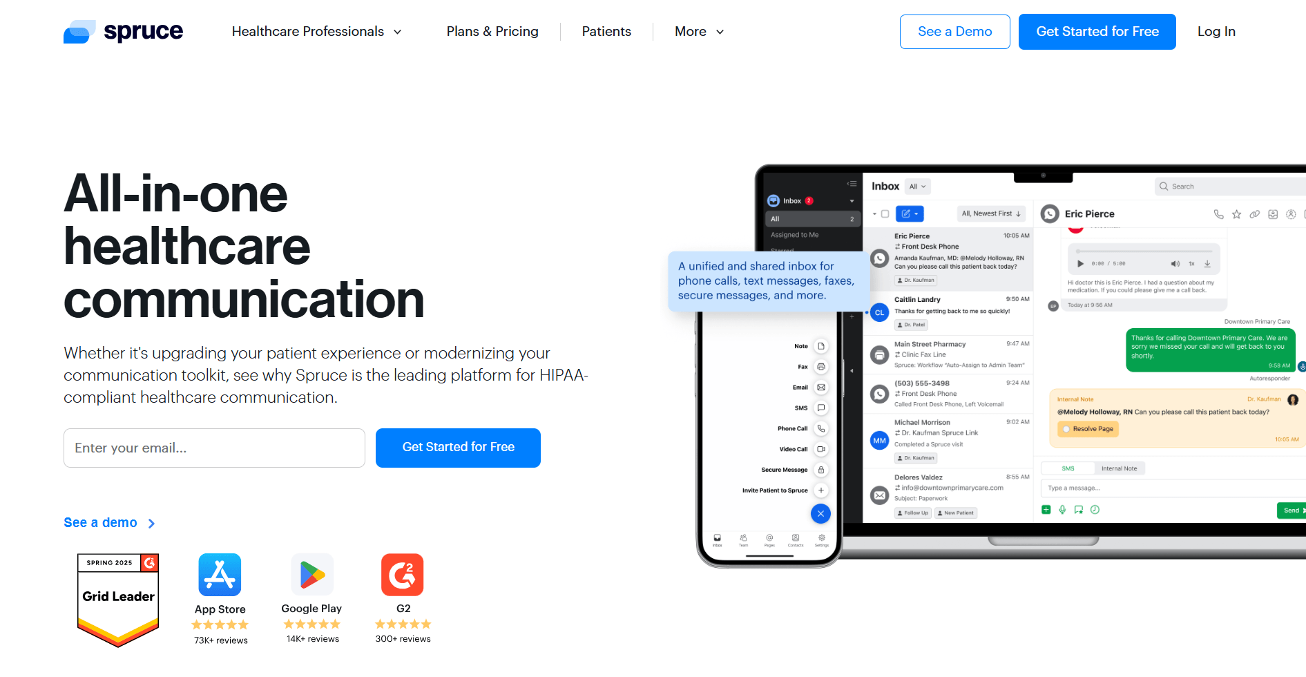 Spruce Health sells itself as an all-in-one healthcare communication platform that leads the way in HIPAA compliance and secure patient communication. As well as offering secure video calls to facilitate virtual appointments, the platform allows teammates to collaborate on group tasks and make sure workflows remain streamlined.