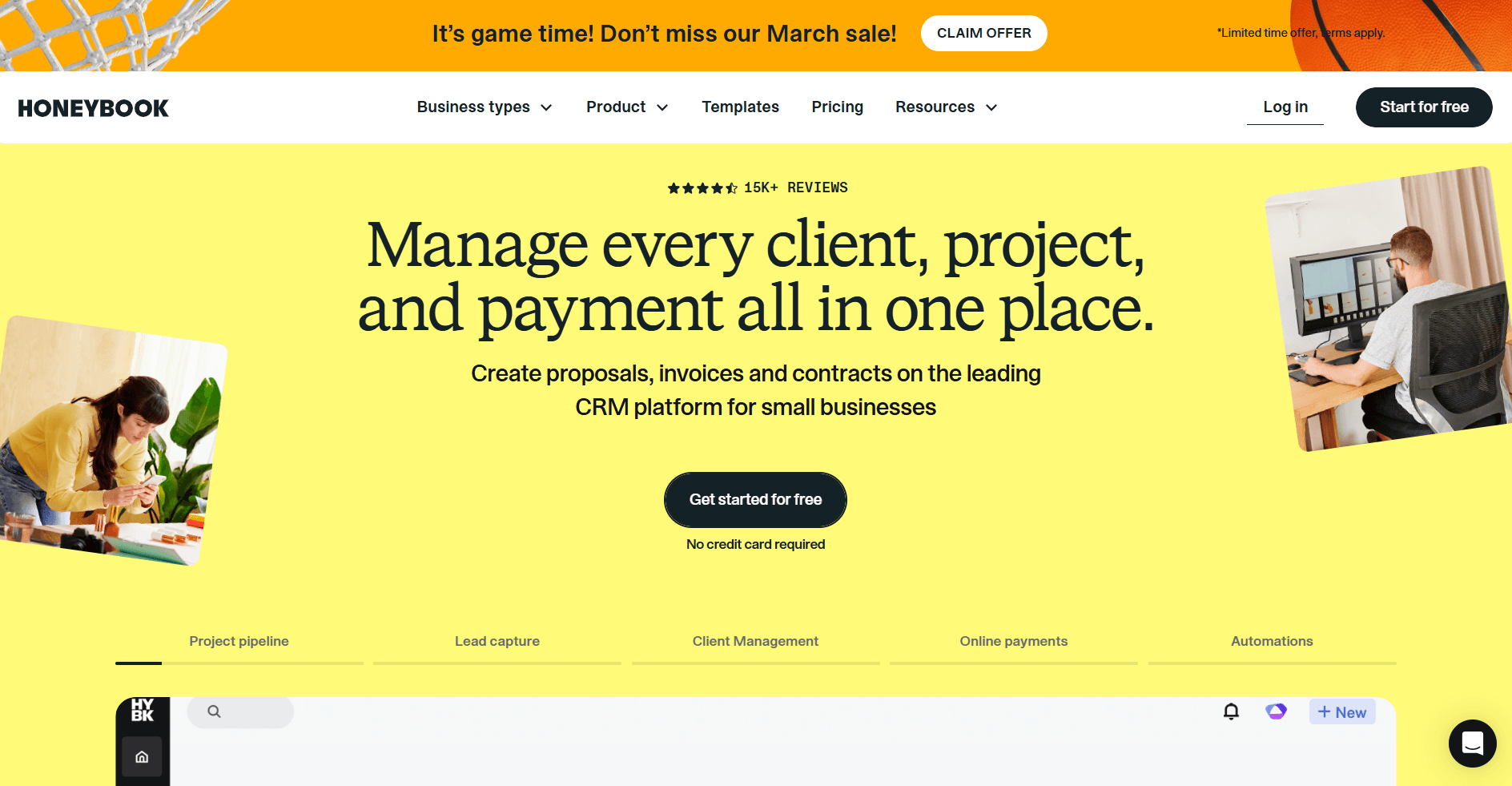 HoneyBook is designed with both clients and users in mind, claiming to ensure that 90% of client invoices are paid on time. What’s more, HoneyBook hires Certified Pros to show new clients the ropes, ensuring they make the most of its features.