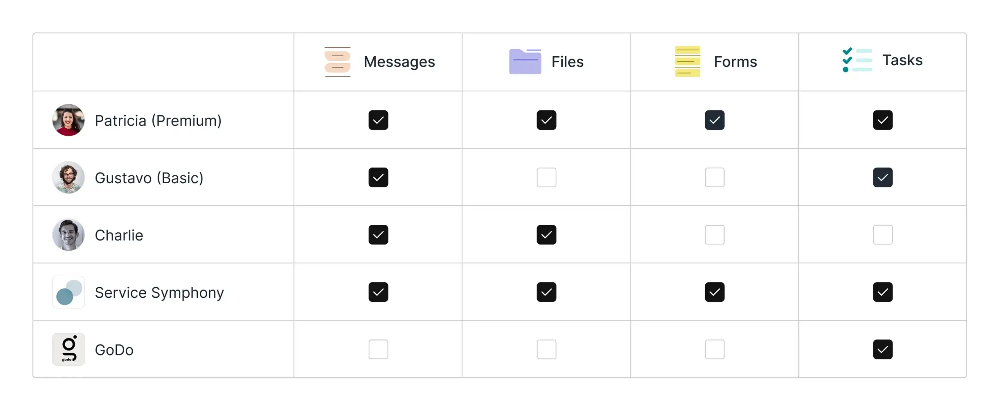Your clients’ experience can be as custom as their needs. With our modular app platform, you can decide exactly what features are available in your client portal. For some clients, that may mean secure messaging and file-sharing, and for others it could mean intake forms and tasks.