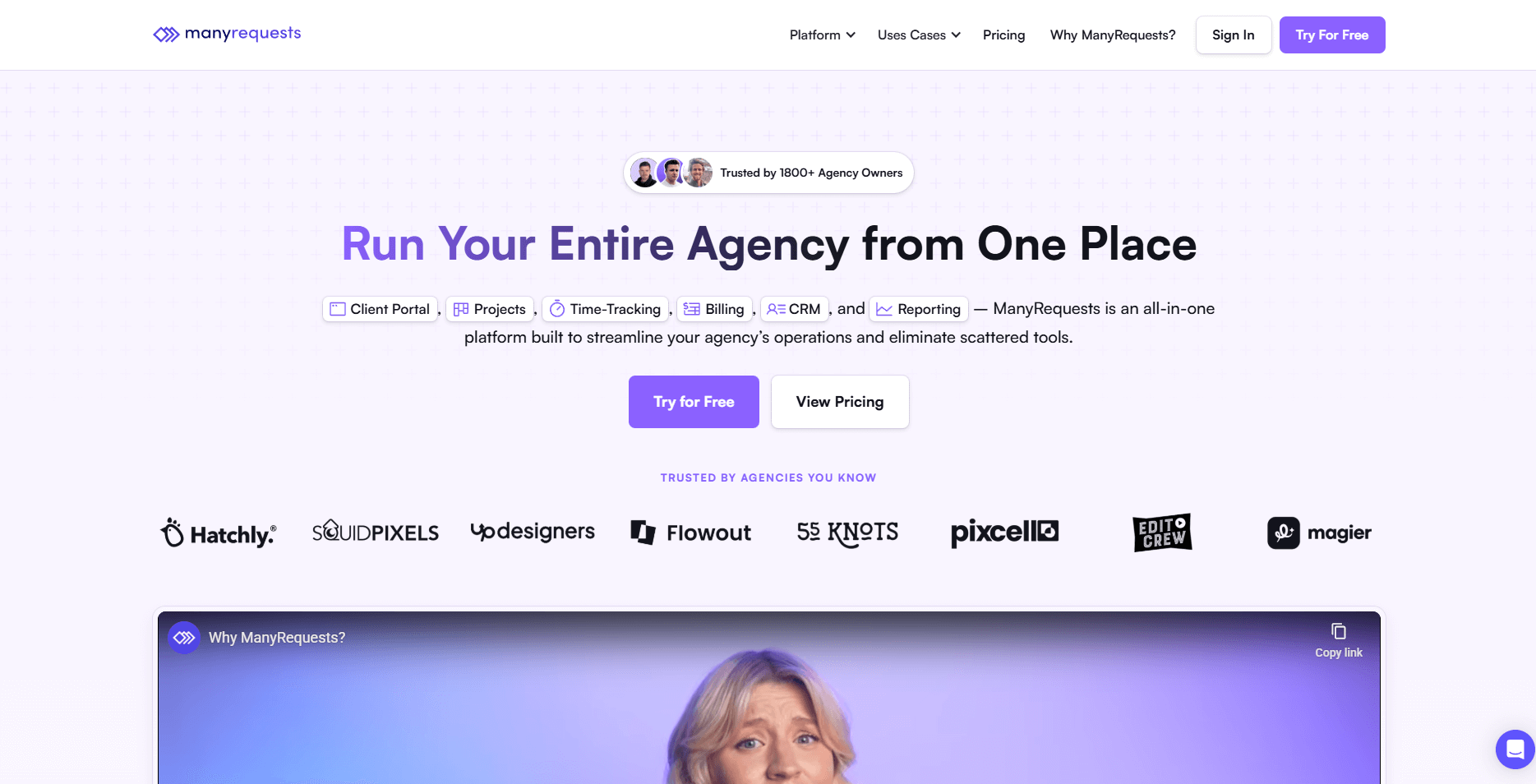 | ManyRequests | Request-based service teams | $19/month | Centralizes client requests, updates, and approvals for productized service teams |