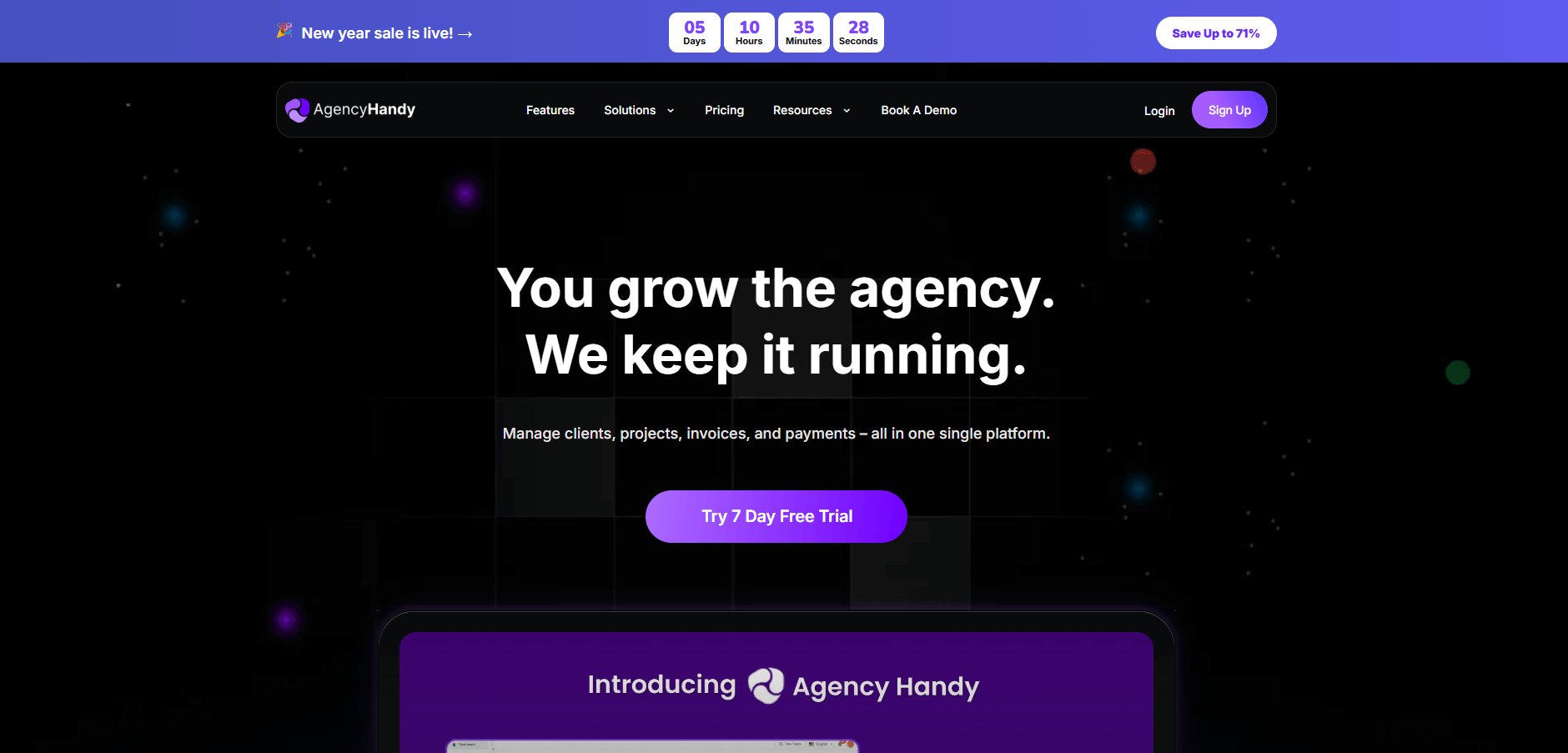 Agency Handy costs $349 per year for solo operators, with higher tiers for small teams and larger agencies that need advanced features.