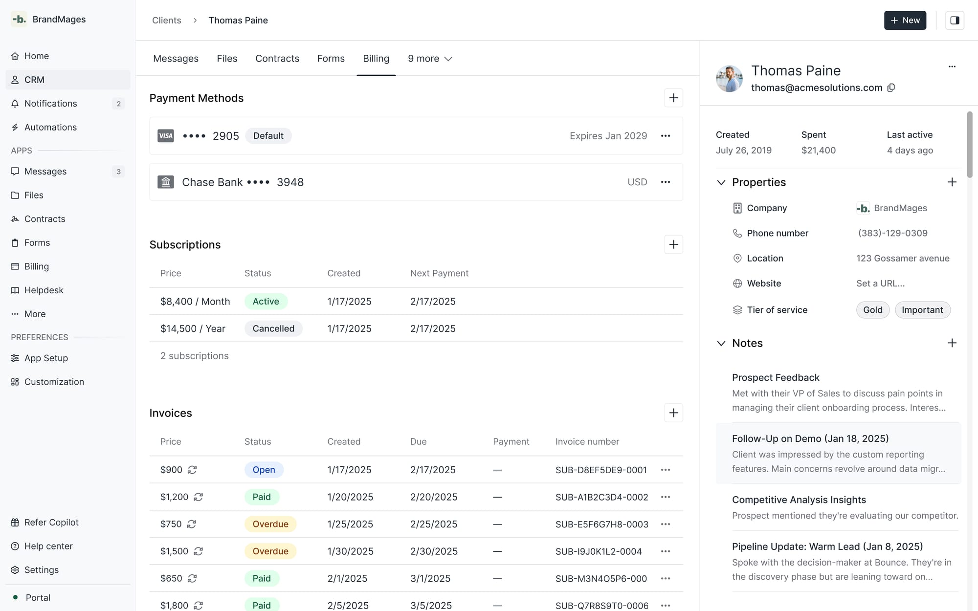 We’re also bringing a cleaner experience to the Client/Company details page next week. Instead of an Invoices tab with payment methods and subscriptions in the sidebar, everything is now unified on one page.
