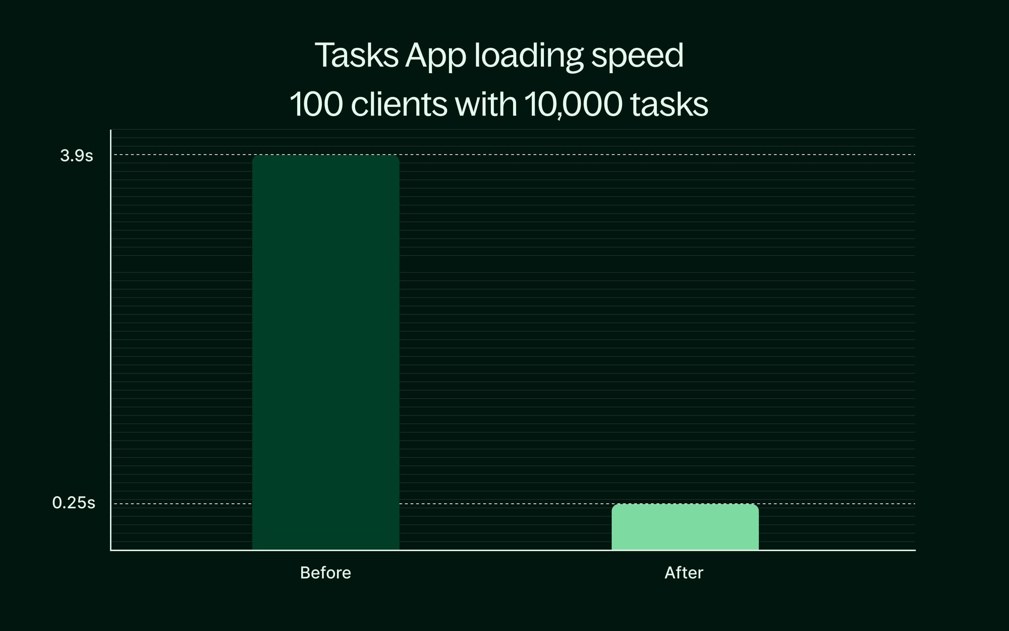 We’ve seen rapid adoption of the Tasks App, especially among larger businesses. We’ve now shipped major performance improvements — you’ll notice dramatically faster load times when opening the app and navigating around it. For example, loading a workspace with 100 clients and 10,000 tasks now takes 0.25s, down from 3.9s.