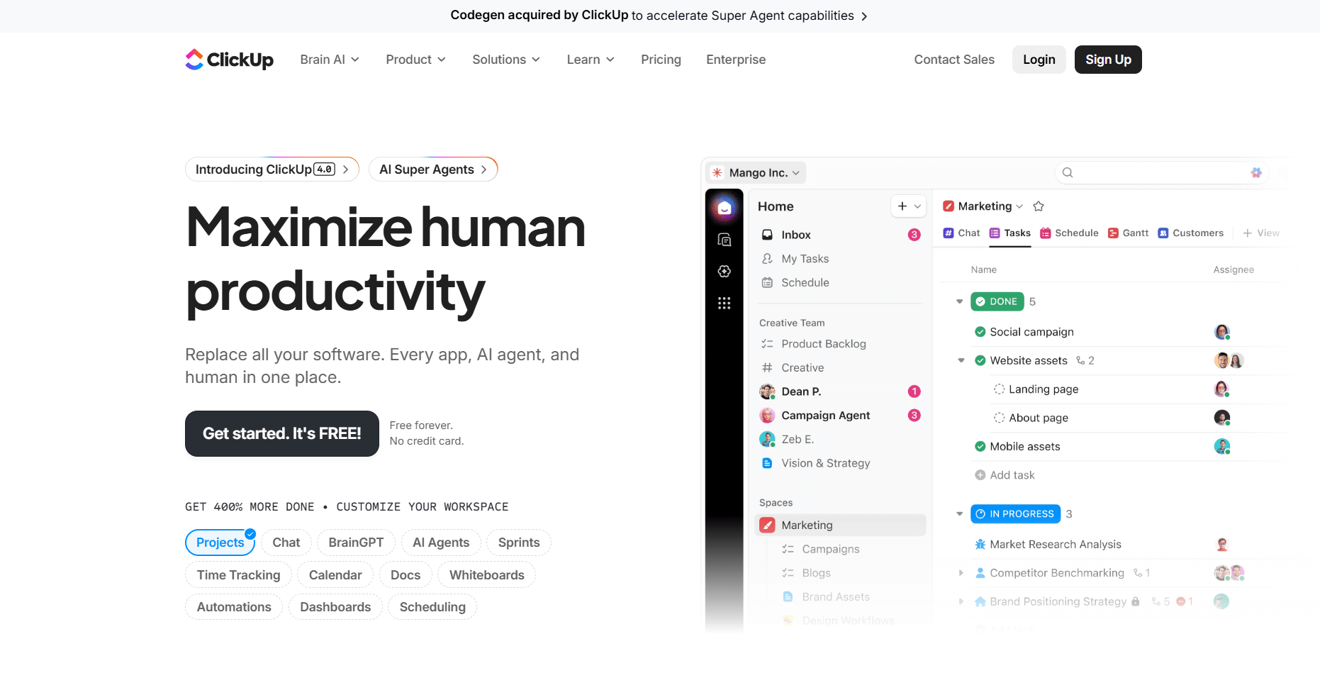 | ClickUp | Teams wanting deep feature customization | $7/user/month | Extensive white label features at enterprise tier |