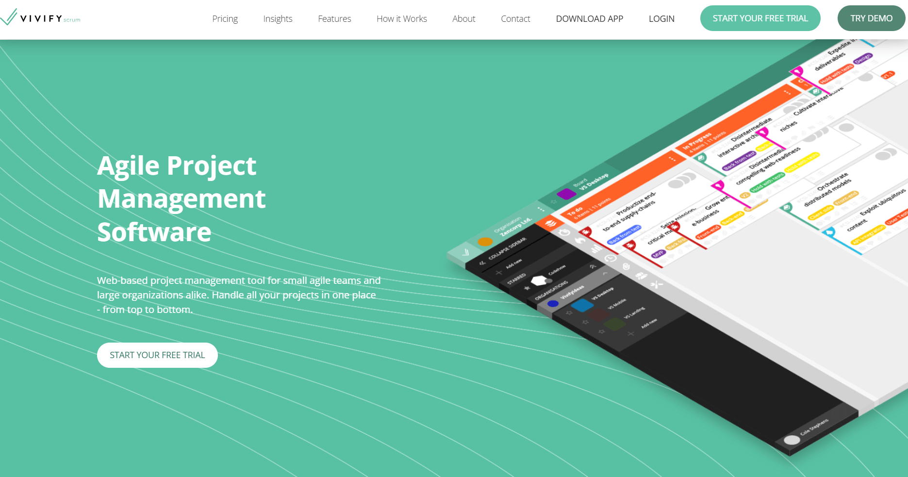 - What it does: VivifyScrum is a project management tool built specifically for Agile and Scrum workflows. It includes Scrum boards, sprint planning, backlog management, and burndown charts.