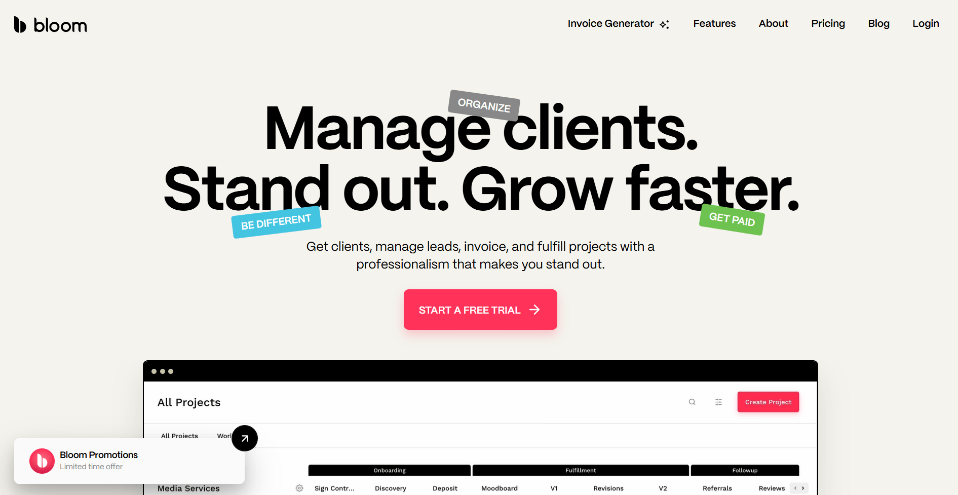 Bloom emerged as a business management tool that helps creative service businesses streamline their client journey from initial proposals all the way to project delivery. It comes with a brand client portal that centralizes client communication while boosting your professional image. Additionally, it comes with automation tools that help reduce your admin, allowing you to focus on your core duties.